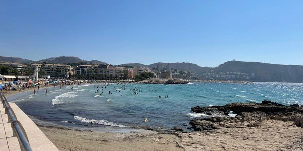 The largest beach in Moraira next to Moraira Castle, with a blue flag status. This is a golden sandy beach with great facilities including water sports and Red Cross lifeguards in high season.